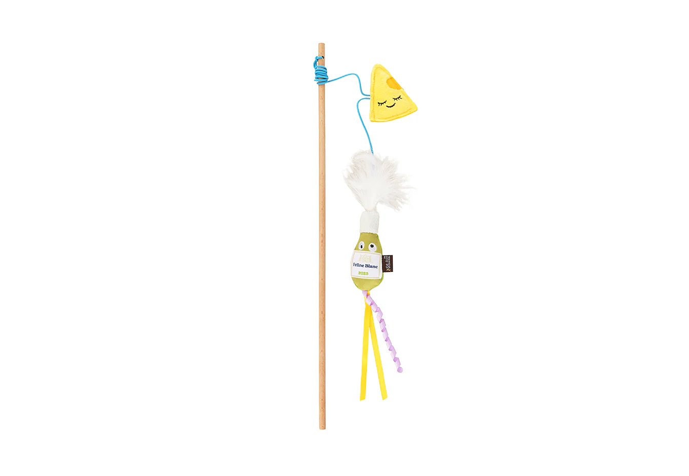 Wine & Cheese Cat Teaser Wand — Interactive Plush Cat Toy with Organic Catnip